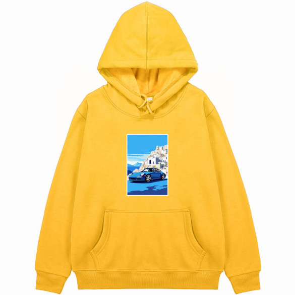 Stay stylish and cozy with our Porsche hoodie featuring a striking blue Porsche 911 design set against the stunning backdrop of Santorini. Perfect for car enthusiasts and fashion lovers alike.This hoodie is made from a blend of cotton and polyester. Relaxed fit with a jersey-lined, drawstring hood, a kangaroo pocket, long sleeves and wide ribbing at the cuffs and hem. Soft brushed inside.Features:- Rib-knit cuffs and waistband for stretchability- Double-lined hood and color-matched drawcord- Side-seamed- Pouch pocket- Pullover type