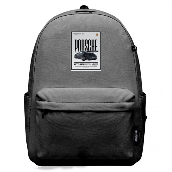 Shop the Porsche Backpack SuperPack featuring a sleek Porsche GT3 RS Black Back View Poster against a stylish gray background. Perfect for any Porsche enthusiast.Our StudentPack is ultra durable and trendy, designed especially for students both young and old. Featuring one main compartment, a front compartment, and all of the space you could ever imagine. Durable and lightweight, the StudentPack is the perfect throw-on-and-go backpack for students.Features:- Roomy main compartment- Front compartment- 2 mesh pockets on both sides- Built to last, high quality waterproof oxford cloth- Adjustable padded shoulder straps- Front pocket with built in organizer- Padding on the back panel for superior comfort- Padded grab handle on top- High quality metal zips- 100% recycled undyed linerSpecifications:Fabric: 100% Polyester Oxford ClothCapacity: 15L (Small size) / 27L (Large size)Weight: 17.63 oz / 500gDimensions: Large size: 16.5" x 13" x 6.3" / 42 x 33 x 16 cmSmall size: 13" x 11" x 6.3" / 32 x 28 x 16 cm