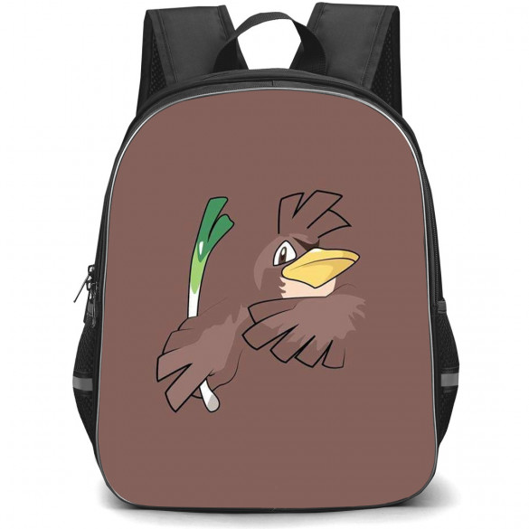 Pokemon Farfetch'd minimalist art backpack - ideal for students. Quality Pokemon backpack designed for style and function.Our StudentPack is ultra durable and trendy, designed especially for students both young and old. Featuring one main compartment, a front compartment, and all of the space you could ever imagine. Durable and lightweight, the StudentPack is the perfect throw-on-and-go backpack for students.Features:- Roomy main compartment- Front compartment- 2 mesh pockets on both sides- Built to last, high quality waterproof oxford cloth- Adjustable padded shoulder straps- Front pocket with built in organizer- Padding on the back panel for superior comfort- Padded grab handle on top- High quality metal zips- 100% recycled undyed linerSpecifications:Fabric: 100% Polyester Oxford ClothCapacity: 15L (Small size) / 27L (Large size)Weight: 17.63 oz / 500gDimensions: Large size: 16.5" x 13" x 6.3" / 42 x 33 x 16 cmSmall size: 13" x 11" x 6.3" / 32 x 28 x 16 cm