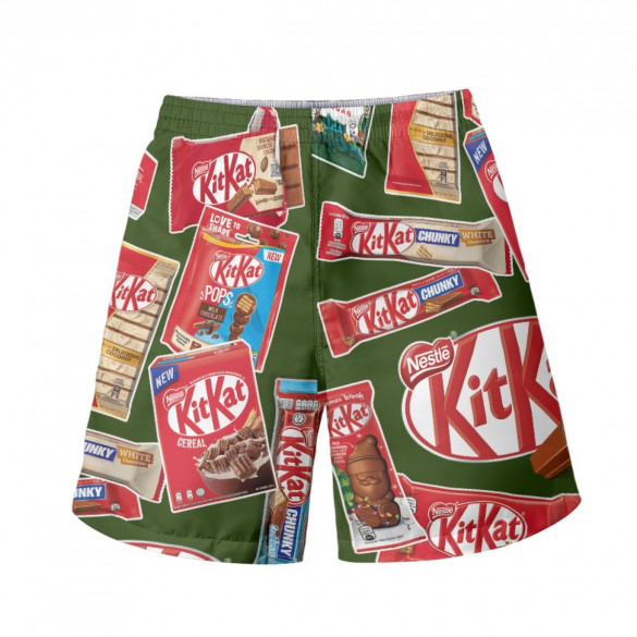Shop the latest KitKat Beach Pants Shorts featuring the iconic KitKat Mania Collage Logo. Perfect for a stylish summer look that stands out.Upgrade your beachwear collection with these versatile beach shorts / swimming trunks. Designed for style, comfort, and functionality, they are perfect for swimming, lounging, active water sports, vacations, camping, or any casual daily wear. These trunks are a must-have for any beach or swimming lover.Features:- Quick-drying fabric (polyester and spandex)- Fitted with side pockets (on men’s sizes only)- Lined with mesh (on men’s sizes only)- Lightweight with maximum breathability- Elastic waistband - UPF-rated fabric, UV protection- Boys and men’s sizes available