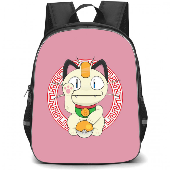 Pokemon Meowth Backpack StudentPack is the purr-fect choice for all Pokemon fans! Featuring a Meowth Paw Up sticker on a stylish pink background.Our StudentPack is ultra durable and trendy, designed especially for students both young and old. Featuring one main compartment, a front compartment, and all of the space you could ever imagine. Durable and lightweight, the StudentPack is the perfect throw-on-and-go backpack for students.Features:- Roomy main compartment- Front compartment- 2 mesh pockets on both sides- Built to last, high quality waterproof oxford cloth- Adjustable padded shoulder straps- Front pocket with built in organizer- Padding on the back panel for superior comfort- Padded grab handle on top- High quality metal zips- 100% recycled undyed linerSpecifications:Fabric: 100% Polyester Oxford ClothCapacity: 15L (Small size) / 27L (Large size)Weight: 17.63 oz / 500gDimensions: Large size: 16.5" x 13" x 6.3" / 42 x 33 x 16 cmSmall size: 13" x 11" x 6.3" / 32 x 28 x 16 cm